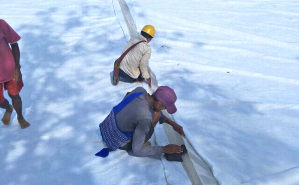 (3)準備充分原材料進場,提升原料的品質進場操縱和取樣檢驗,保證原料品質合格,確保防水土工布鋪裝持續開展;
